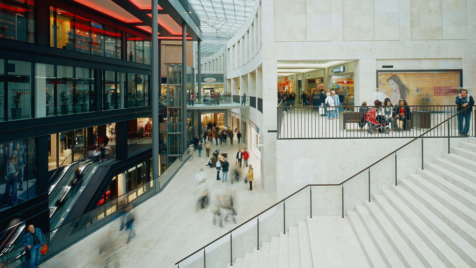 The mall, which is spread across four levels, is designed to represent individual buildings to create a continuation of the urban fabric and surrounding streets.