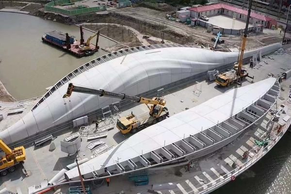 Construction is well advanced at Chapman Taylor designed Cloud Bridge in the Jinwan district of Shanghai, China