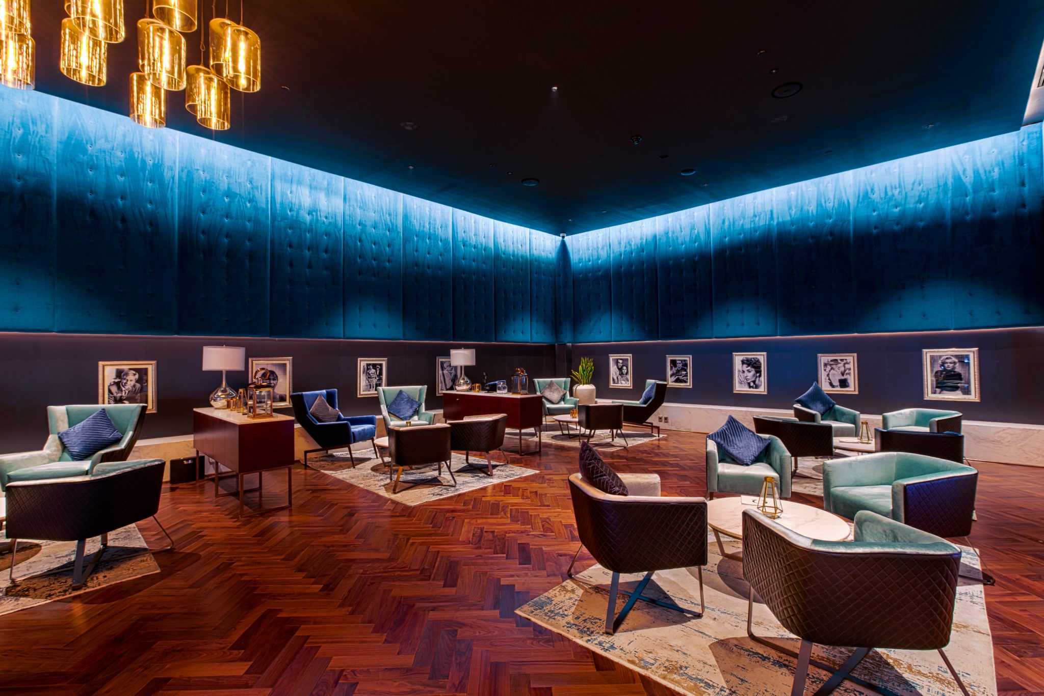The latest LED and OLED display technologies are used throughout the cinema. An enormous LED screen is positioned in the lobby, with curved LED panels throughout the complex. The most striking LED element is located within the cinema access corridor. The design uses three curved LED-inclined walls and soffits. The effect is quite astonishing, transporting customers into a space that feels otherworldly.