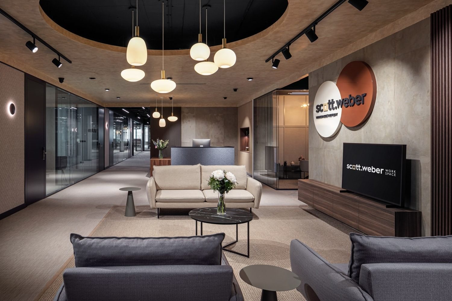 The fit-out for Scott.Weber provides a mix of flexible workplace options for individuals and companies demanding a premium environment in the heart of the city. Located in The Flow Building, the workplace has access to a large community space on the top floor, surrounded by an extensive roof terrace with stunning views across the city.