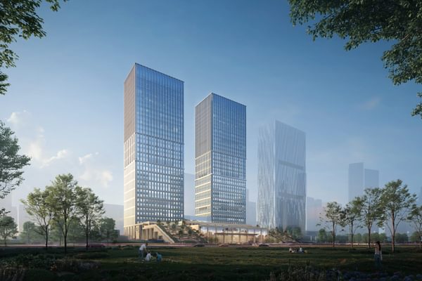 The design harmonises traditional Chinese architectural elements, such as the symbolic "Pagoda," with sleek modern aesthetics, creating a landmark symbolising innovation and cultural heritage. The façade design uses a refined combination of glass and stone, tapering vertically to enhance the skyline's aesthetic.