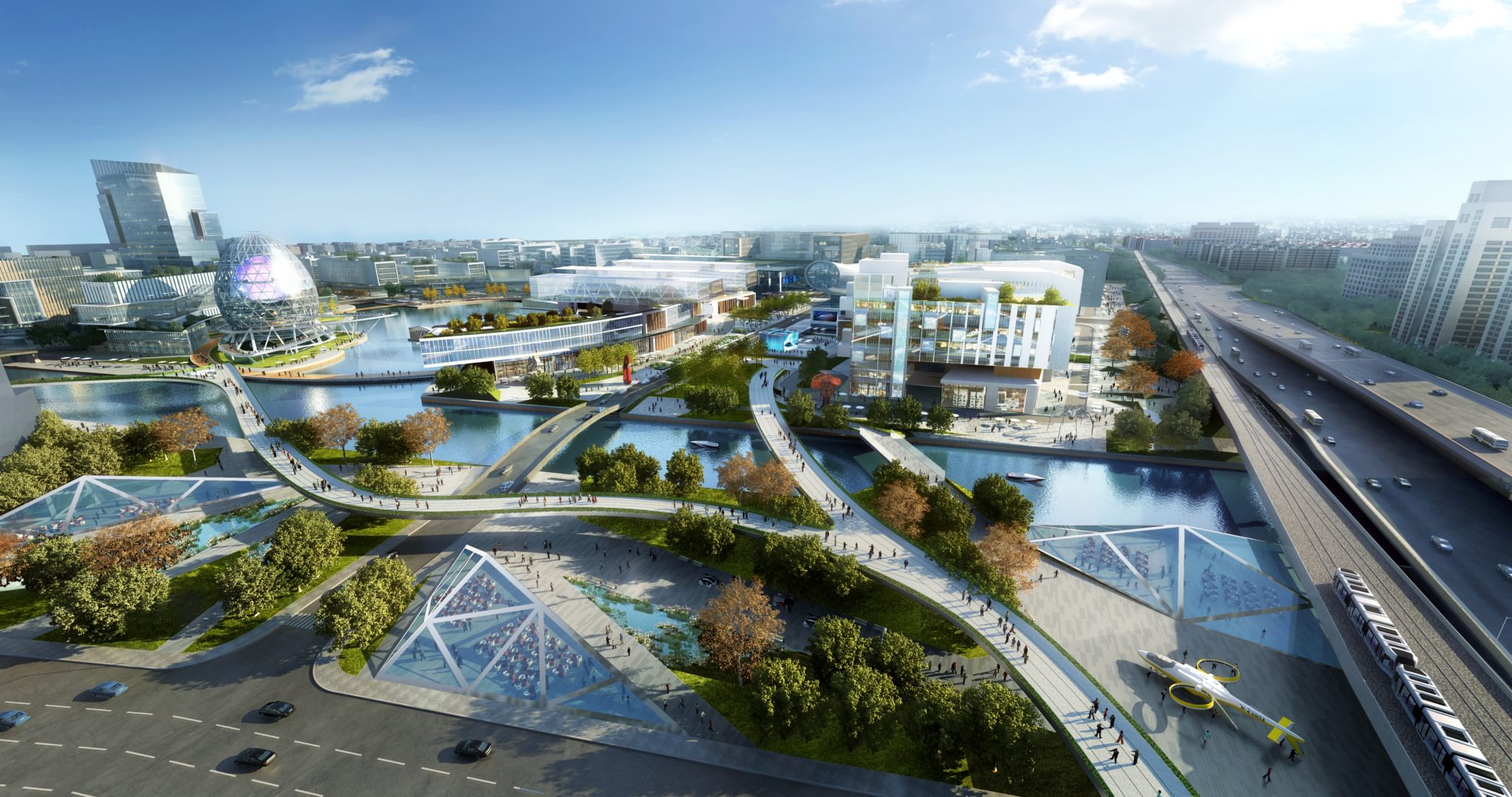 The design reimagines the idea of a technology and R&D campus as a micro-city with its own identity and cultural dynamic – a vibrant lifestyle community combining health and wellbeing and environmental sustainability with extensive and immersive digital interactivity. Cutting-edge technology will be intertwined with green spaces, lakes and canals in an exciting and beautiful place to live, work and play.