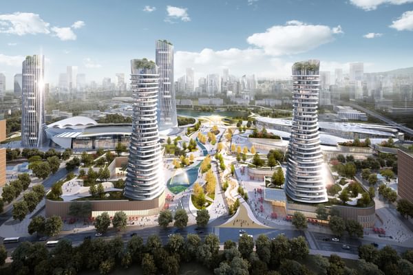 The 30-hectare site for Jiangjin Central Business District will be home to four signature tower buildings, two shopping centres and a commercial block, with a total building volume of 10 million m². The commercial block will be the core of the business district, providing state-of-the-art facilities for a range of industries, while the modern and elegant towers, with their rooftop trees and shrubs, will form impressive visual gateways to the district.