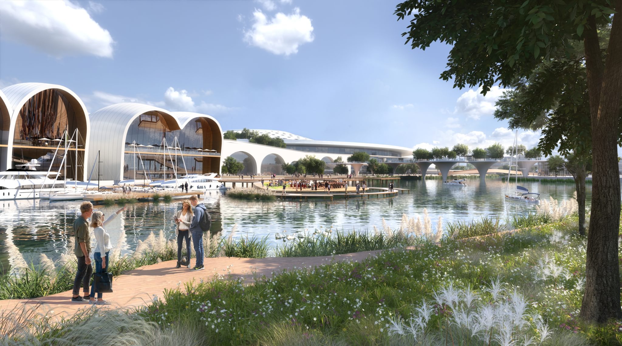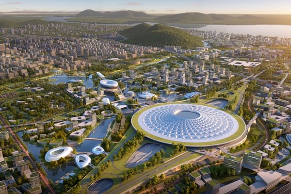 This transport-orientated masterplan for Wenzhou Eastern New Town creates a new eco-city with residential, leisure, retail, cultural and industrial areas strategically placed according to 15-Minute Living principles. The three-dimensional and comprehensive design integrates at least seven modes of transportation, including aviation, high-speed rail, metro, intercity, waterway transportation, a BRT system and regular public transport, around which a number of interlinked centres will grow.